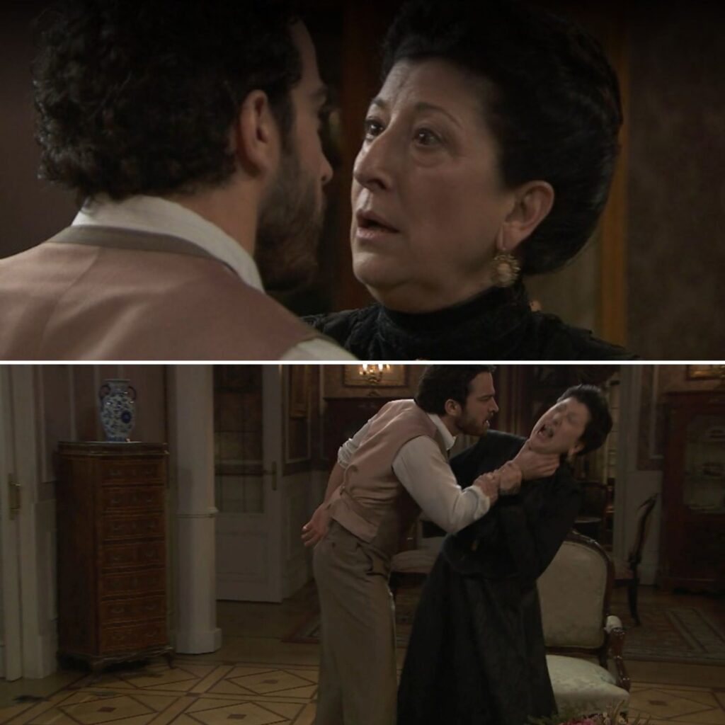 Ursula przypomina Diego o dramatycznej śmierci jego matki, co doprowadza go do szału. Casilda ma odegrać rolę pośredniczki, pomagając Antonio zdobyć względy Lolity. Simon dowiaduje się, że Adela rozpowiada o jego rzekomym wyznaniu miłosnym. Maria Luisa jest pewna, że na jednym z obrazów rozpoznała Elvirę.