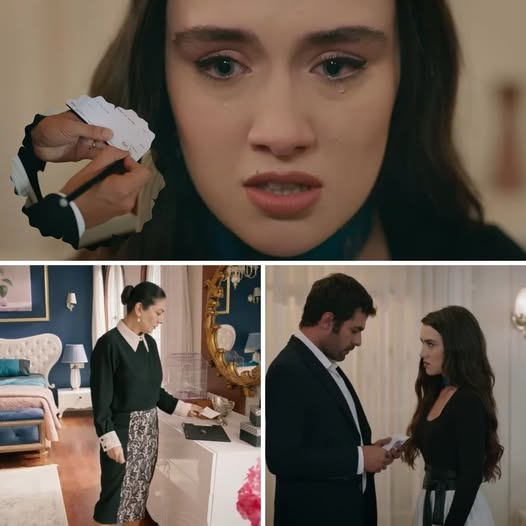 Nazajutrz Tulay przekracza próg sypialni Zeynep i Halila. Pomieszczenie jest puste, w powietrzu unosi się zapach świeżego mydła i wilgoci po kąpieli. Kobieta zamierza już wycofać się, gdy nagle jej wzrok zatrzymuje się na czymś drobnym, połyskującym na dywanie. Podchodzi bliżej i schyla się, by podnieść kartkę. Serce zaczyna jej bić mocniej. To nie zwykły skrawek papieru – to czek in blanco, opatrzony wyraźnym podpisem Halila.